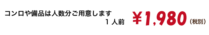 3,コンロは1名から8名は1台、9名から16名は2台、17名から24名は3台(コンロ1つに付き炭1箱お持ち致します。)