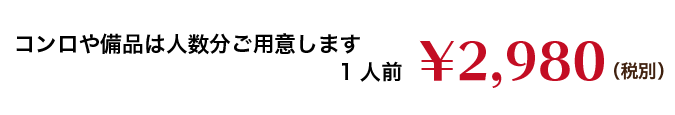 3,コンロは1名から8名は1台、9名から16名は2台、17名から24名は3台(コンロ1つに付き炭1箱お持ち致します。)